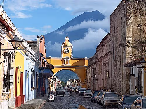 Arco de Santa Catalina er den mest fotograferede bygning i Antigua Guatemala, og det giver god mening. Den gule bue over 5a Avenida Norte blev bygget, så nonnerne fra Santa Catalina-klosteret kunne krydse gaden uden at blive set. Efter jordskælvene i 1773 blev buen forladt i over hundrede år, før den blev sat i stand i 1890’erne, hvor klokketårnet kom på toppen. I dag rammer den Volcan de Agua perfekt ind for enden af gaden. Det er gratis at se buen, og den er tilgængelig altid, da gaden løber lige igennem den. Det er et stop, man skal tage, men vær ærlig: det tager to minutter. Gå igennem, tag dit billede med vulkanen i baggrunden, og gå videre. La Merced ligger to minutter mod nord, og Parque Central er en kort gåtur mod syd. Buen fungerer bedst som et vartegn på vejen mellem de to. Det, der gør det værd at stoppe, er selve gaden. 5a Avenida Norte er fyldt med restauranter, jade-butikker og kafferisterier. Det er byens turistcentrum, og her er liv fra morgen til aften. Det er det sted i Antigua Guatemala, man ikke kan undgå at se.
