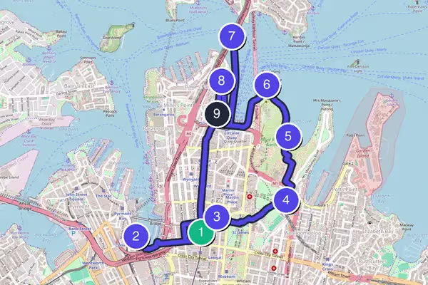 La passeggiata inizia da questo edificio in stile neoromanico lungo 190 metri risalente al 1898, che occupa un intero isolato su George Street. Il QVB era nato come mercato ma è rimasto in stato di abbandono per decenni prima che un grosso restauro negli anni '80 lo trasformasse in uno dei centri commerciali più belli di Sydney. All'interno si vedono vetrate colorate, pavimenti a mosaico e una cupola centrale che illumina le gallerie superiori. Ci sono due orologi famosi: il Royal Clock, che ad ogni ora mostra scene della storia reale inglese, e il Great Australian Clock, un pezzo meccanico da 82 componenti che ha richiesto quattro anni di lavoro. Qui è conservata anche una lettera sigillata della Regina Elisabetta II con l'ordine di non aprirla fino al 2085. L'ingresso è libero. Aperto lunedì, martedì, mercoledì, venerdì e sabato dalle 9:00 alle 18:00, giovedì fino alle 21:00, domenica dalle 11:00 alle 17:00.